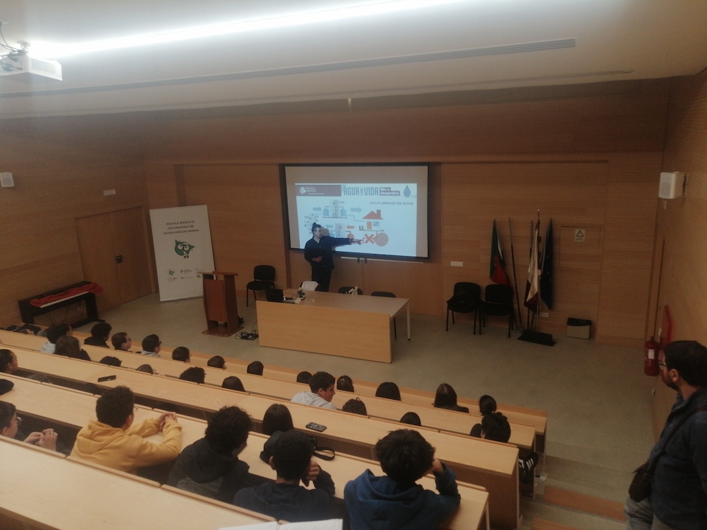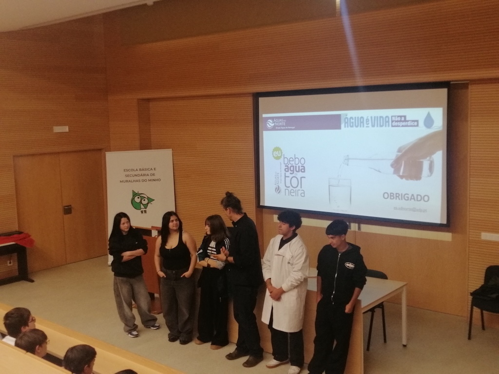 “Os alunos do 9.º ano participaram com grande interesse na palestra “Água é Vida: Não a Desperdice”, ministrada pelo engenheiro Rui Pedro Sousa. Ao longo da sessão, demonstraram uma atitude atenta e participativa, colocando questões pertinentes e envolvendo-se nas atividades propostas. De um modo geral, a interação foi bastante positiva, refletindo uma clara sensibilização para a importância da preservação da água. Esta iniciativa contribuiu para reforçar a consciência ambiental dos alunos, incentivando-os a adotar comportamentos mais responsáveis no seu dia a dia. “